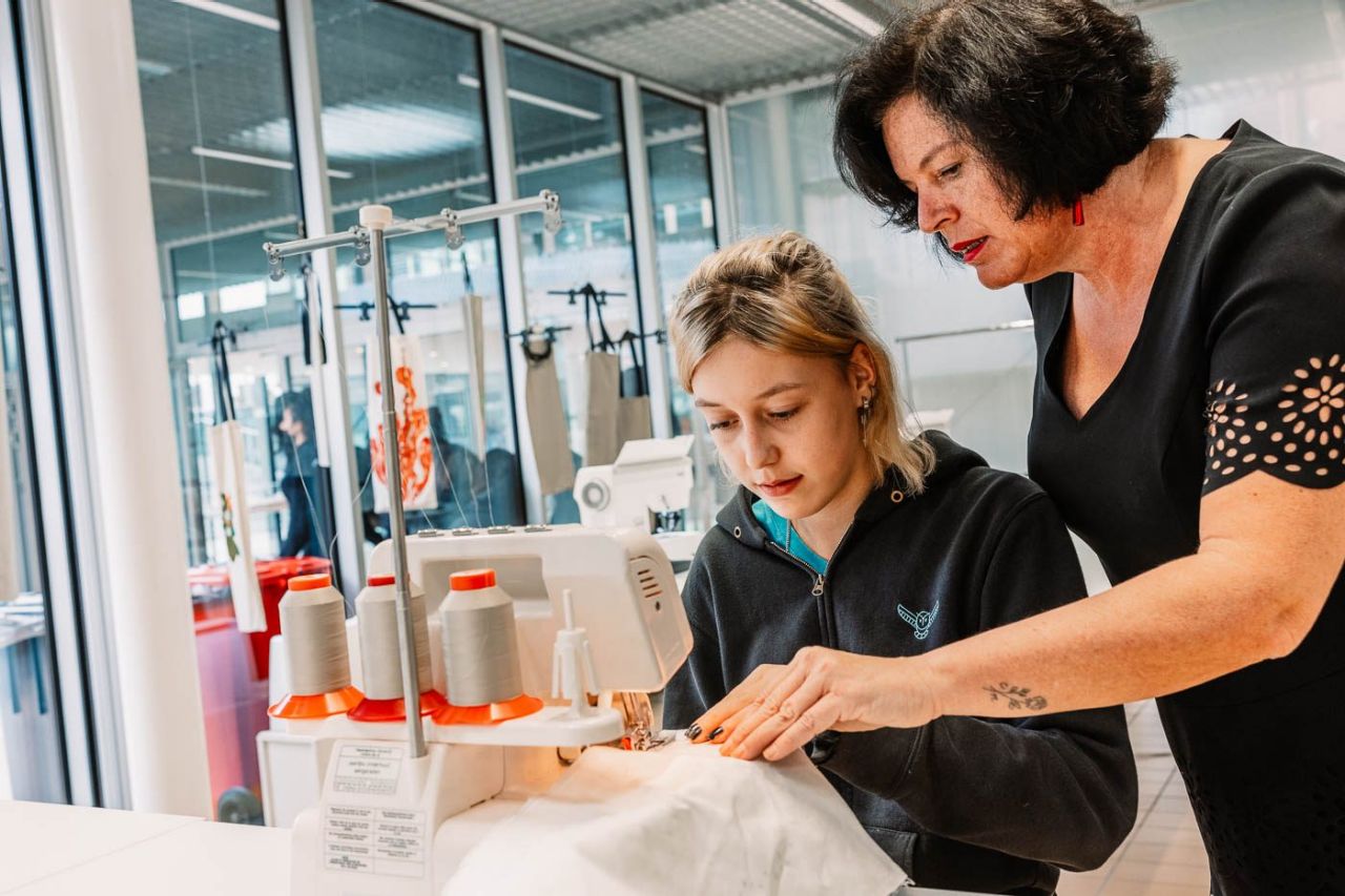 Interesse in mode, kleuren en combinaties, daar begint het mee. Wil je ook nog eens aan de slag met de naaimachine, dan ben je klaar voor het tweede leerjaar B-stroom basisoptie mode. Laat je niet afschrikken door die naaimachine. Je leert alle geheimen kennen op je eigen tempo. Leerlingen in deze richting vinden het leuk om, na wat oefenen, zelf met de naaimachine te werken. Je blijft trouwens niet altijd in het klaslokaal, maar gaat ook samen met de klas etalages bekijken of stoffen aankopen.